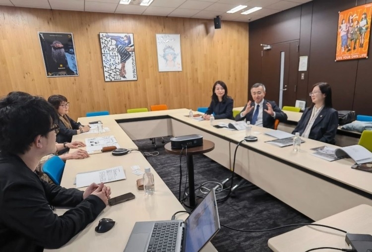 At Digital Hollywood Company, the delegation engaged in deep discussions with Executive Director Ino Shigeto on “new media + industry”, covering short-term student exchange programs and joint course development between China and Japan.